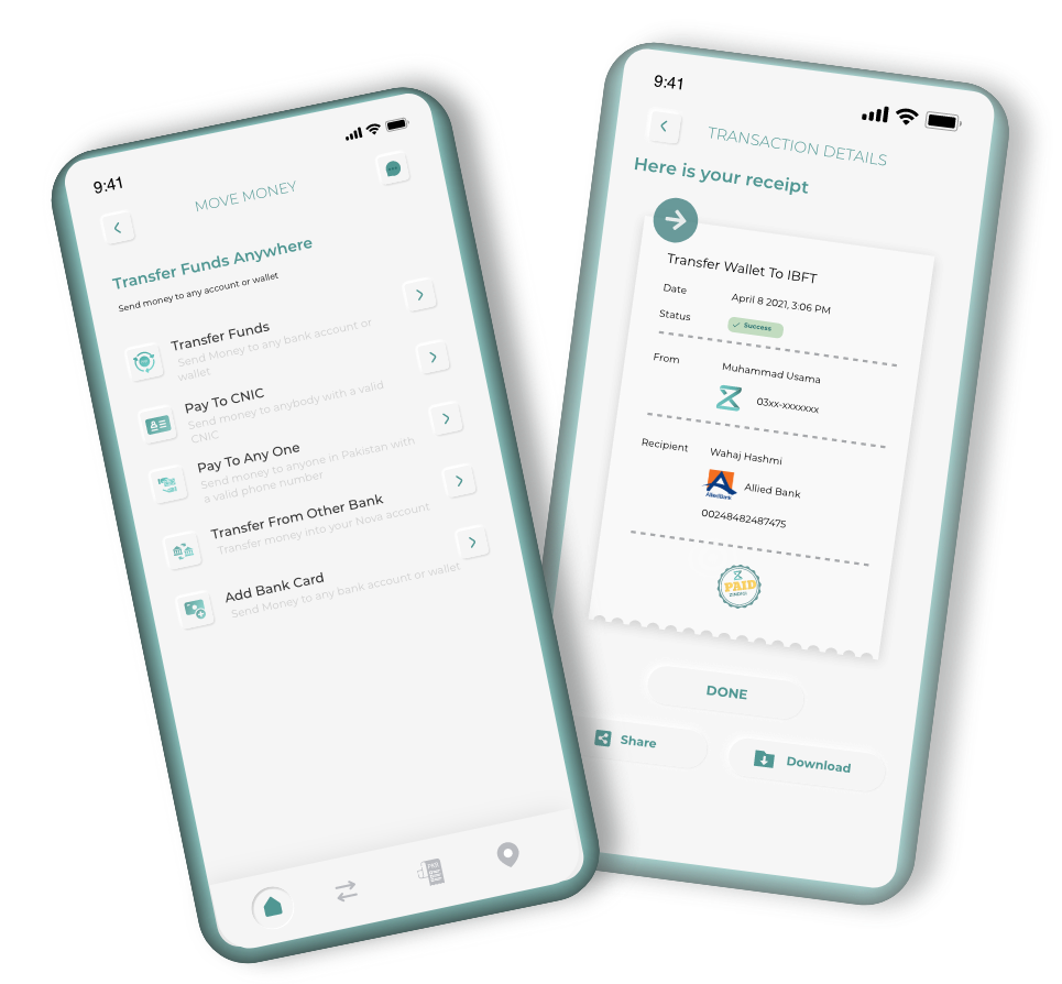 Send and receive payments, pay bills, invest your money, and save big with Nova. Customise your dashboard according to your need.